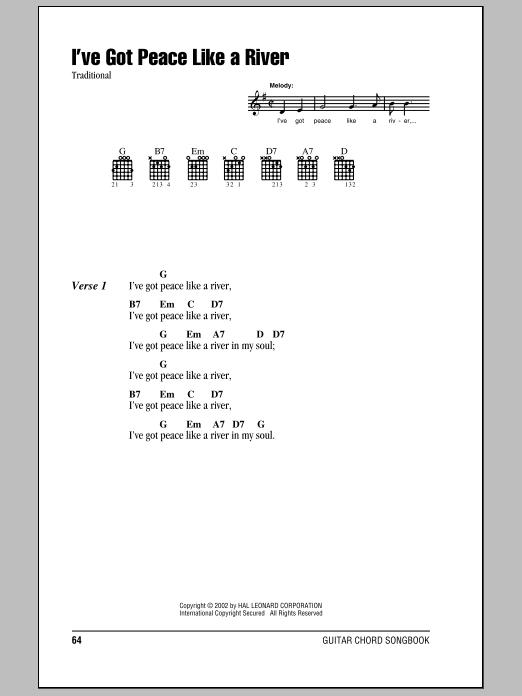 Quick facts I've Got Peace Like A River about digital sheet music