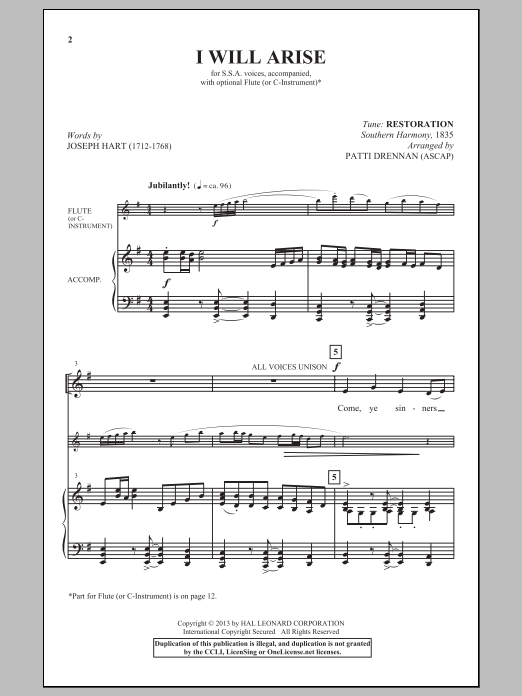Download or print Patti Drennan I Will Arise sheet music, chords and digital score arranged for SSA Choir. This Concert score includes 11 page(s).