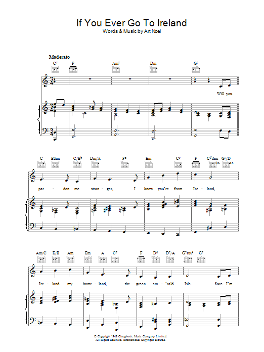 Download or print Traditional If You Ever Go To Ireland sheet music, chords and digital score arranged for Piano, Vocal & Guitar Chords. This Folk score includes 5 page(s).