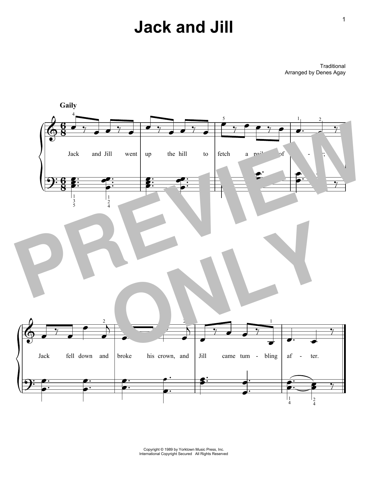 Download or print Traditional Jack And Jill (arr. Denes Agay) sheet music, chords and digital score arranged for Easy Piano. This Children score includes 1 page(s).