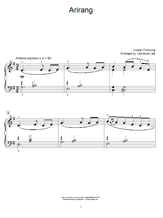 Download or print Korean Folksong Arirang sheet music, chords and digital score arranged for Educational Piano. This Folk score includes 2 page(s).