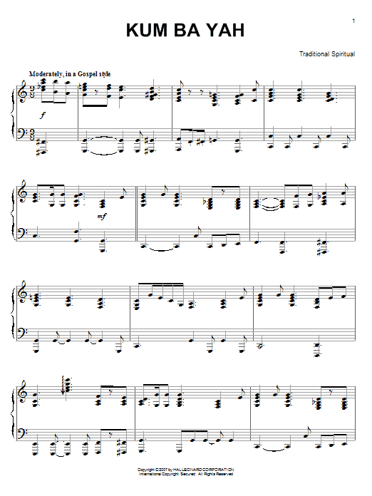 Download or print Traditional Kum Ba Yah sheet music, chords and digital score arranged for Easy Piano. This Children score includes 2 page(s).