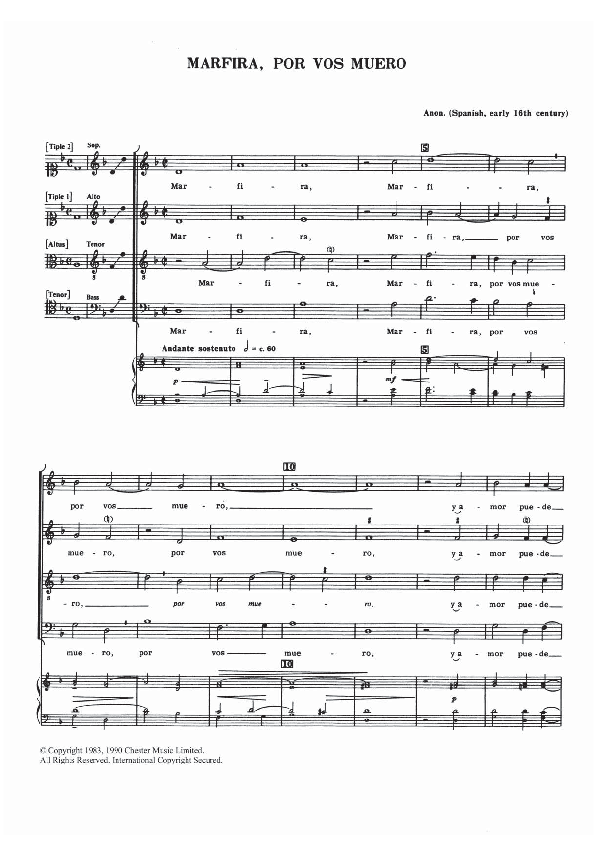 Download or print Traditional Marfira, Por Vos Muero sheet music, chords and digital score arranged for SATB Choir. This Classical score includes 4 page(s).