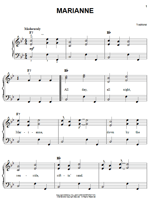 Download or print Traditional Marianne sheet music, chords and digital score arranged for Piano, Vocal & Guitar Chords (Right-Hand Melody). This Country score includes 3 page(s).