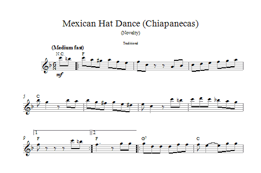 Download or print Traditional Mexican Hat Dance sheet music, chords and digital score arranged for Lead Sheet / Fake Book. This Folk score includes 1 page(s).