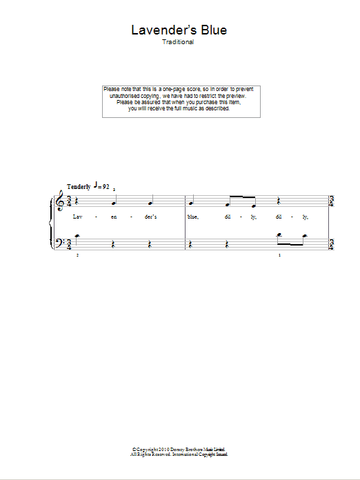 Quick facts Lavender Blue about digital sheet music