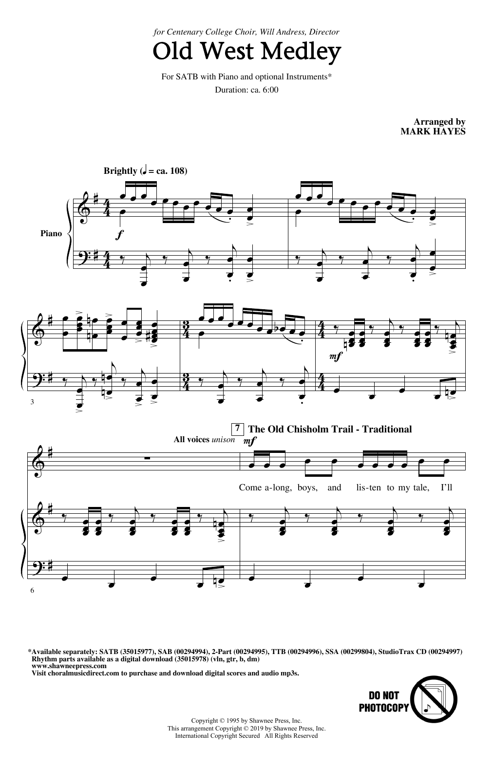 Download or print Traditional Old West Medley (arr. Mark Hayes) sheet music, chords and digital score arranged for SAB Choir. This Concert score includes 22 page(s).