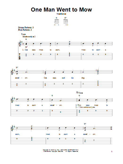 Download or print Traditional One Man Went To Mow sheet music, chords and digital score arranged for Lead Sheet / Fake Book. This Children score includes 2 page(s).