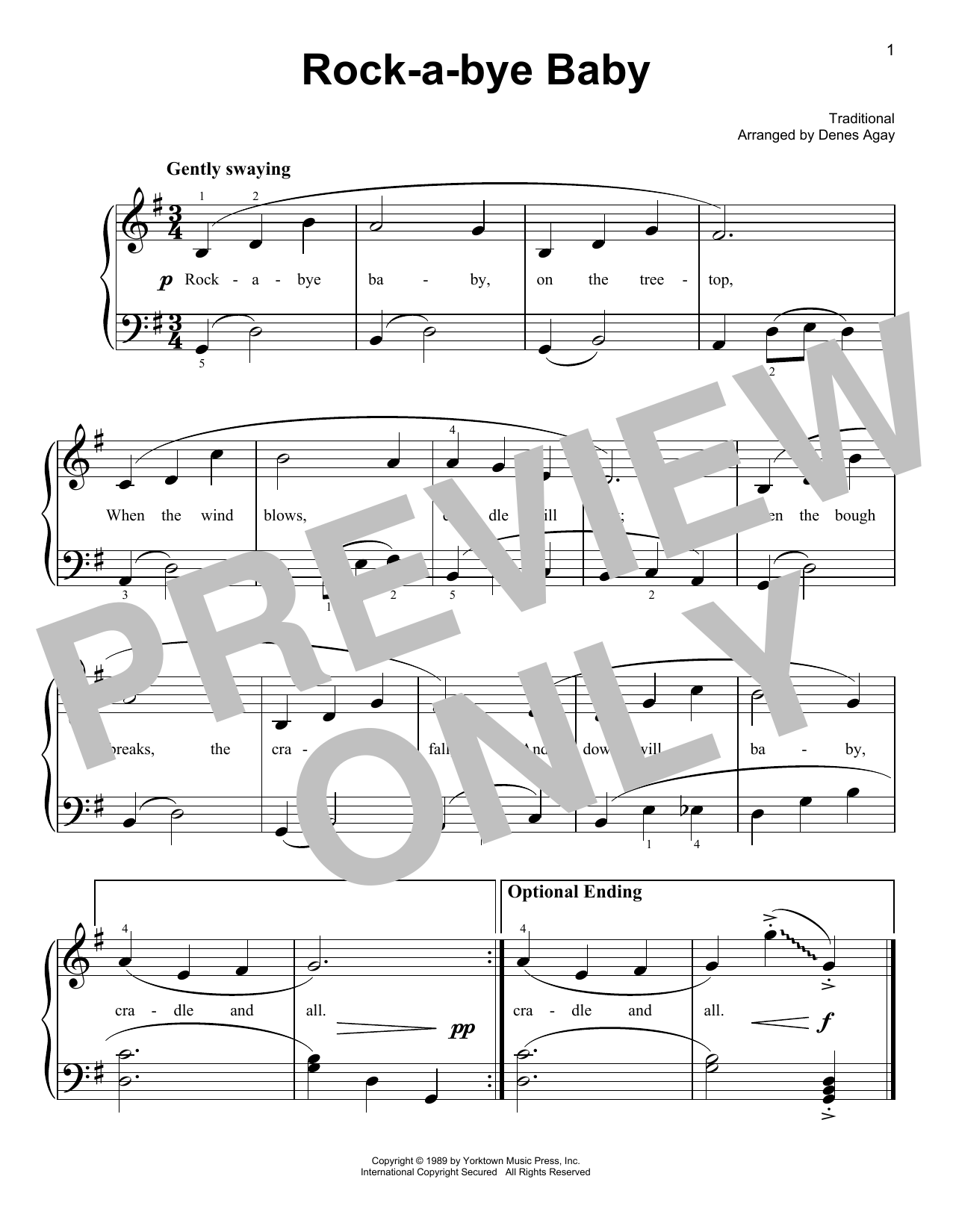 Download or print Traditional Rock-A-Bye, Baby (arr. Denes Agay) sheet music, chords and digital score arranged for Easy Piano. This Children score includes 1 page(s).