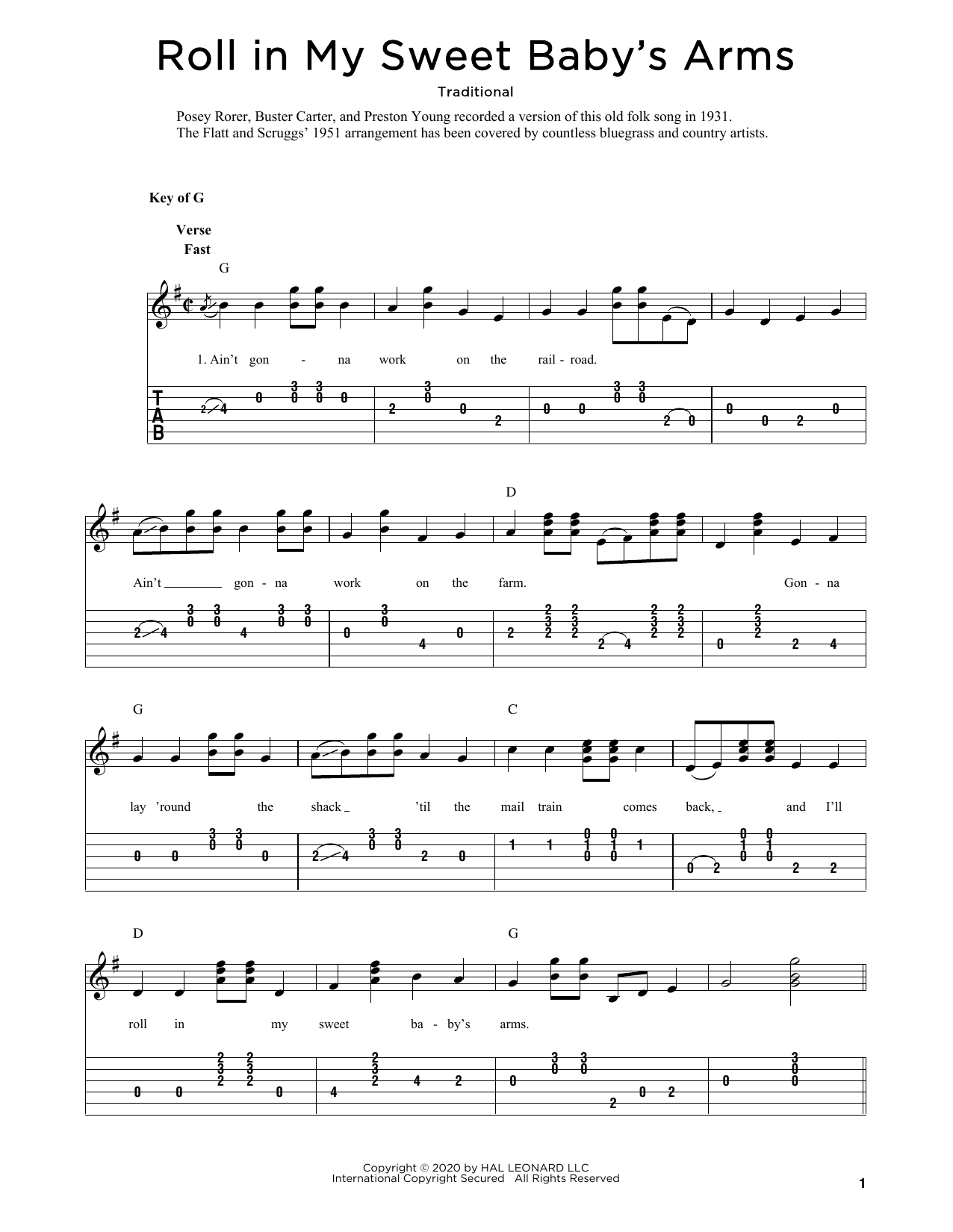 Download or print Traditional Roll In My Sweet Baby's Arms (arr. Fred Sokolow) sheet music, chords and digital score arranged for Solo Guitar. This Country score includes 2 page(s).