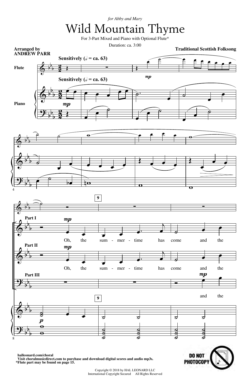 Download or print Traditional Scottish Folk Song Wild Mountain Thyme (arr. Andrew Parr) sheet music, chords and digital score arranged for 3-Part Mixed Choir. This Concert score includes 14 page(s).