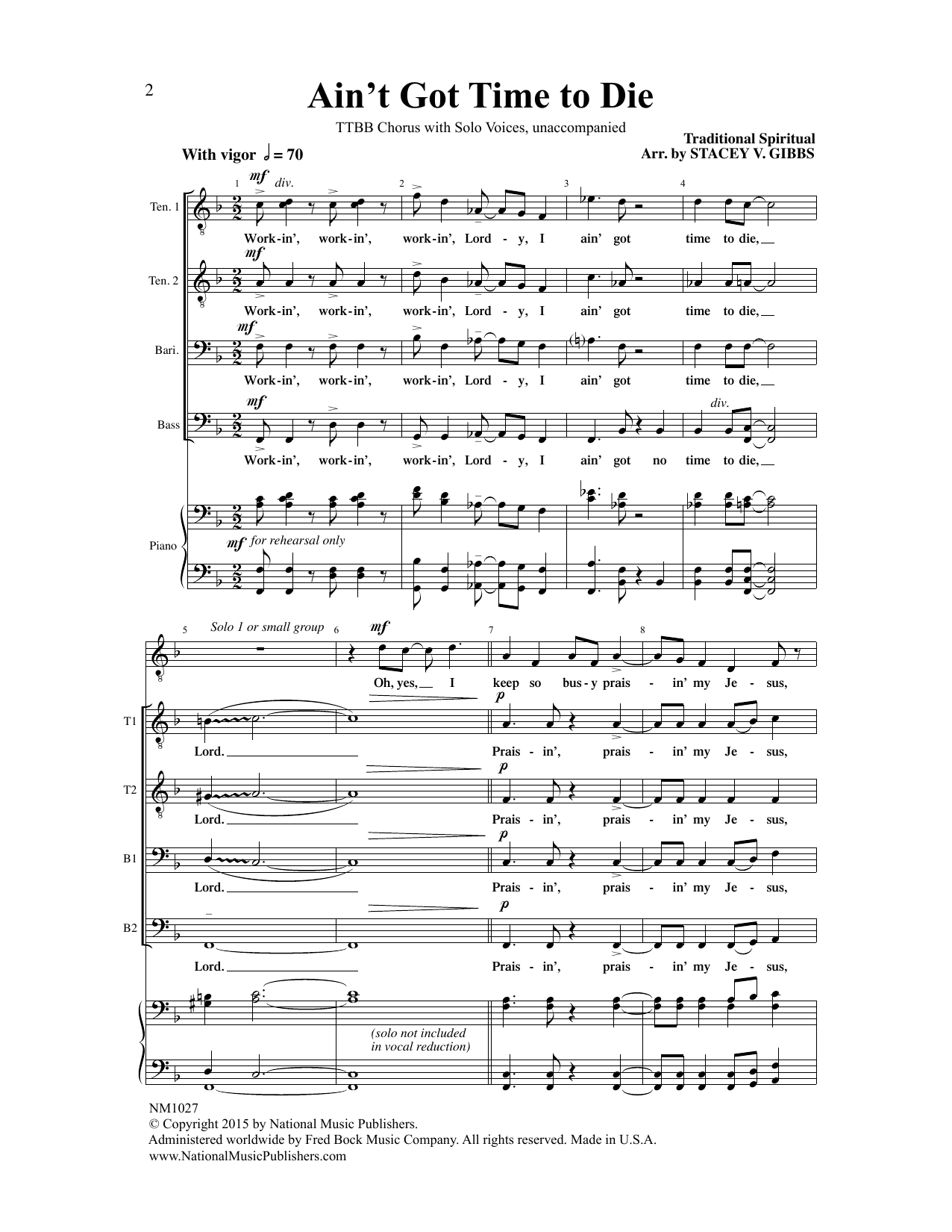 Download or print Traditional Spiritual Ain't Got Time To Die (arr. Stacey V. Gibbs) sheet music, chords and digital score arranged for TTBB Choir. This Concert score includes 11 page(s).