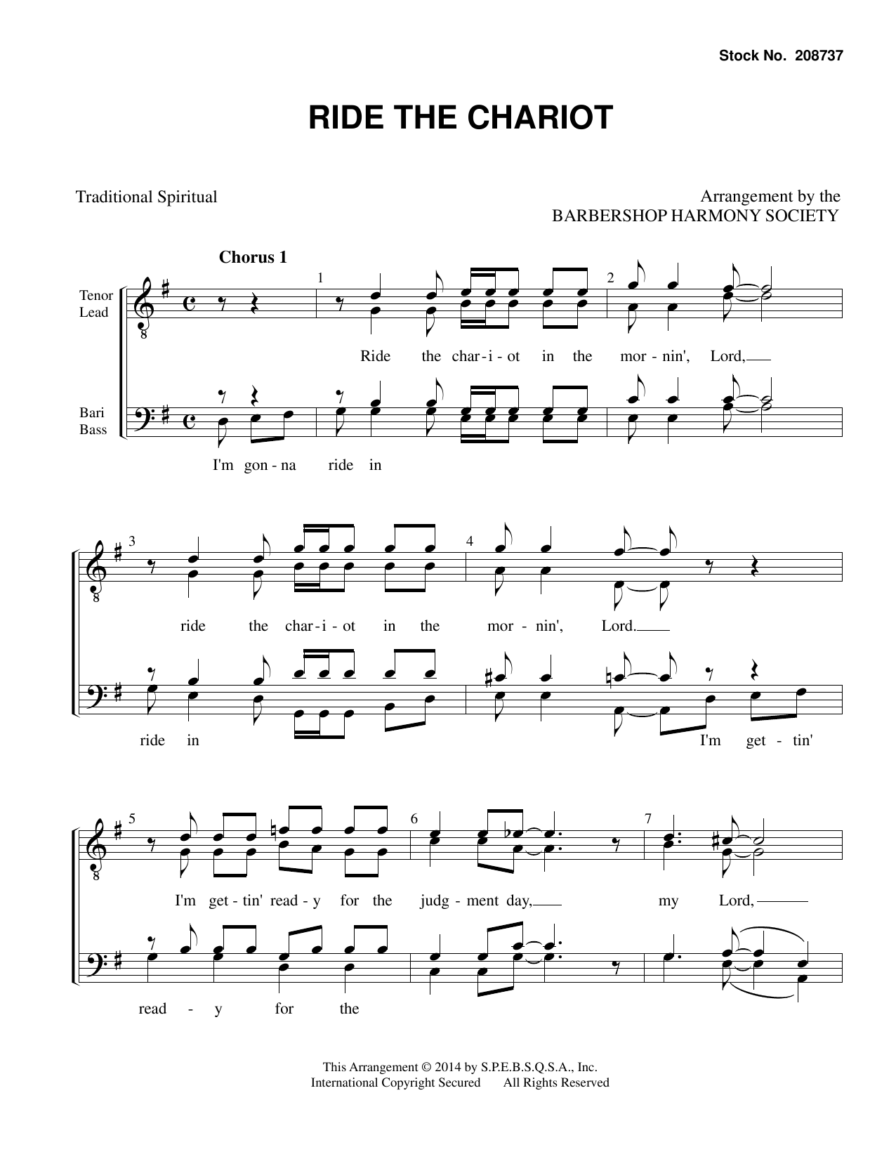 Quick facts Ride the Chariot (arr. Barbershop Harmony Society) about digital sheet music