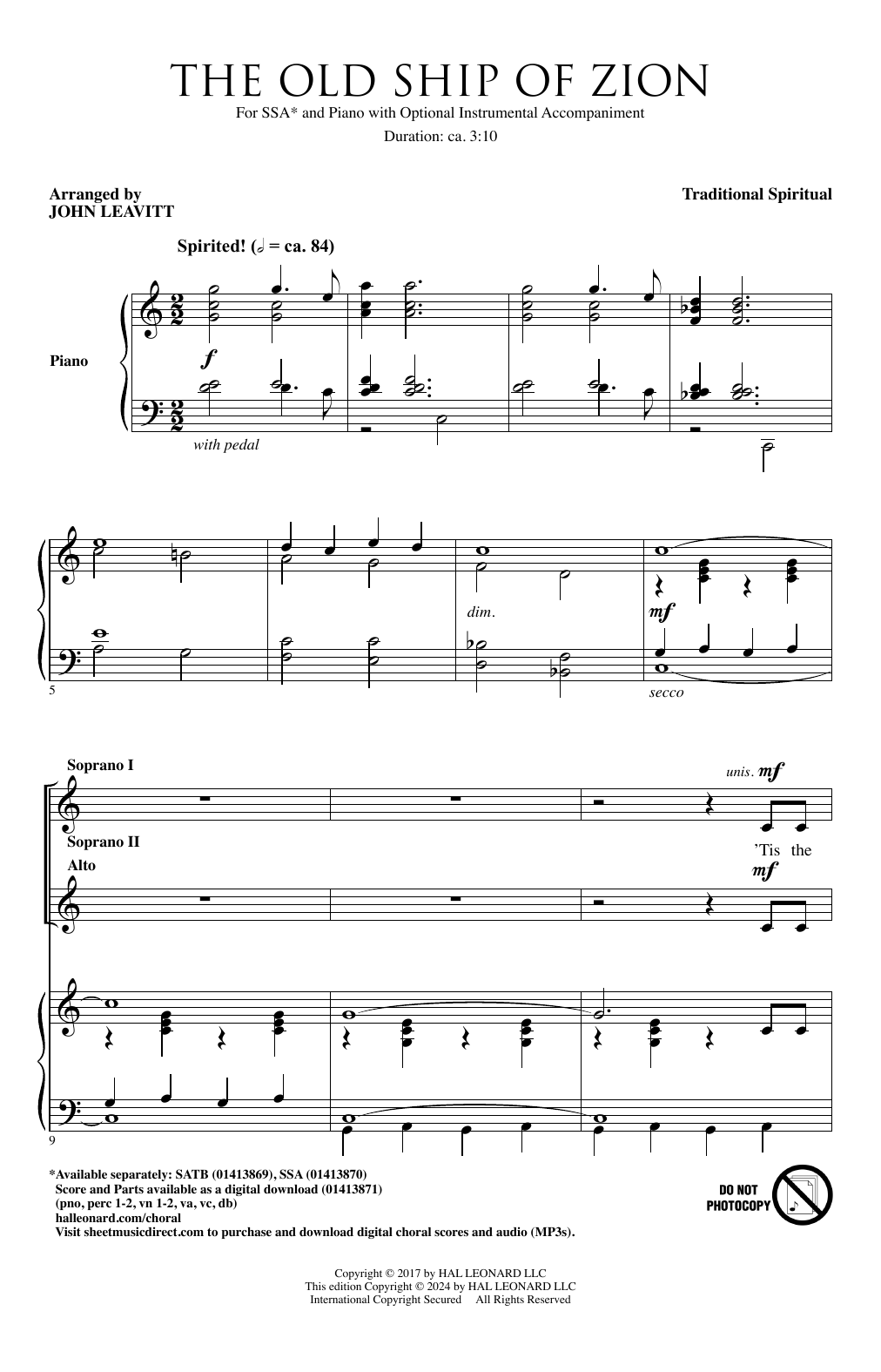 Download or print Traditional Spiritual The Old Ship Of Zion (arr. John Leavitt) sheet music, chords and digital score arranged for SSA Choir. This Collection score includes 14 page(s).