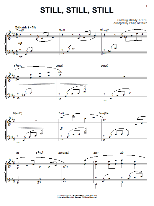 Download or print Traditional Still, Still, Still [Jazz version] (arr. Phillip Keveren) sheet music, chords and digital score arranged for Piano Solo. This Christmas score includes 3 page(s).