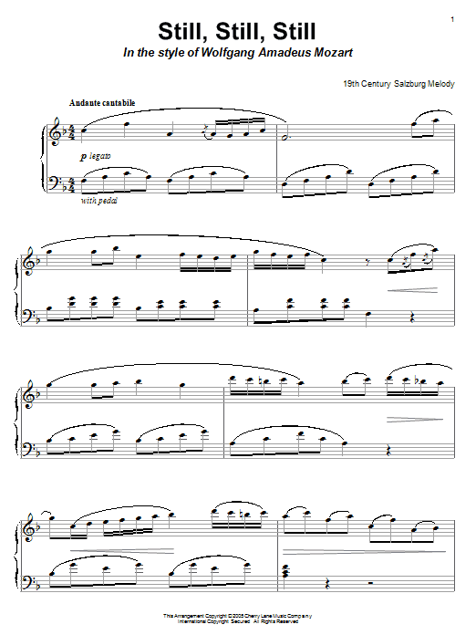 Download or print Salzburg Melody Still, Still, Still (in the style of Mozart) sheet music, chords and digital score arranged for Piano Solo. This Christmas score includes 2 page(s).