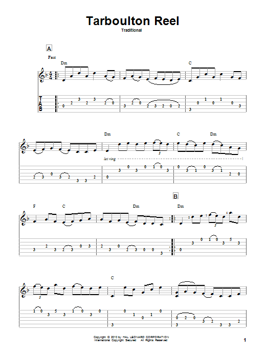 Download or print Traditional Tarboulton Reel sheet music, chords and digital score arranged for Solo Guitar. This Irish score includes 2 page(s).