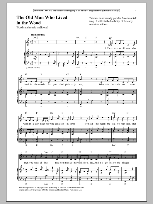 Download or print Traditional The Old Man Who Lived In The Wood sheet music, chords and digital score arranged for Piano & Vocal. This Traditional score includes 2 page(s).