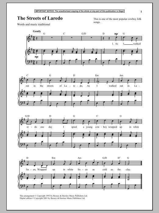 Quick facts The Streets Of Laredo about digital sheet music
