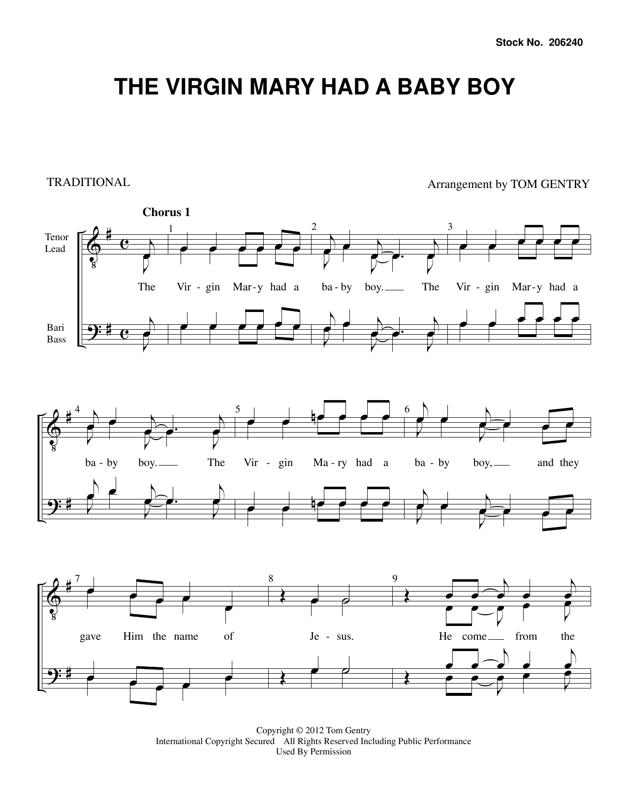Download or print Traditional The Virgin Mary had a Baby Boy (arr. Tom Gentry) sheet music, chords and digital score arranged for TTBB Choir. This Barbershop score includes 8 page(s).