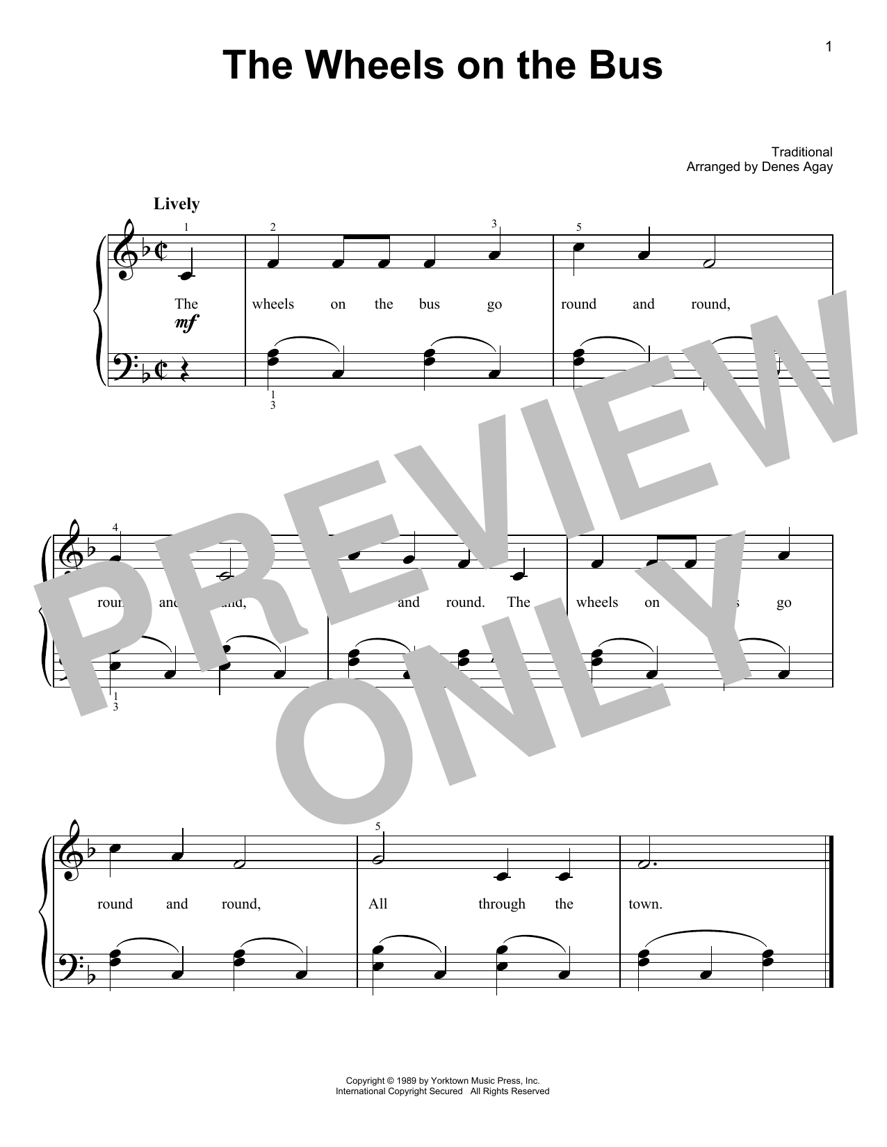 Quick facts The Wheels On The Bus (arr. Denes Agay) about digital sheet music