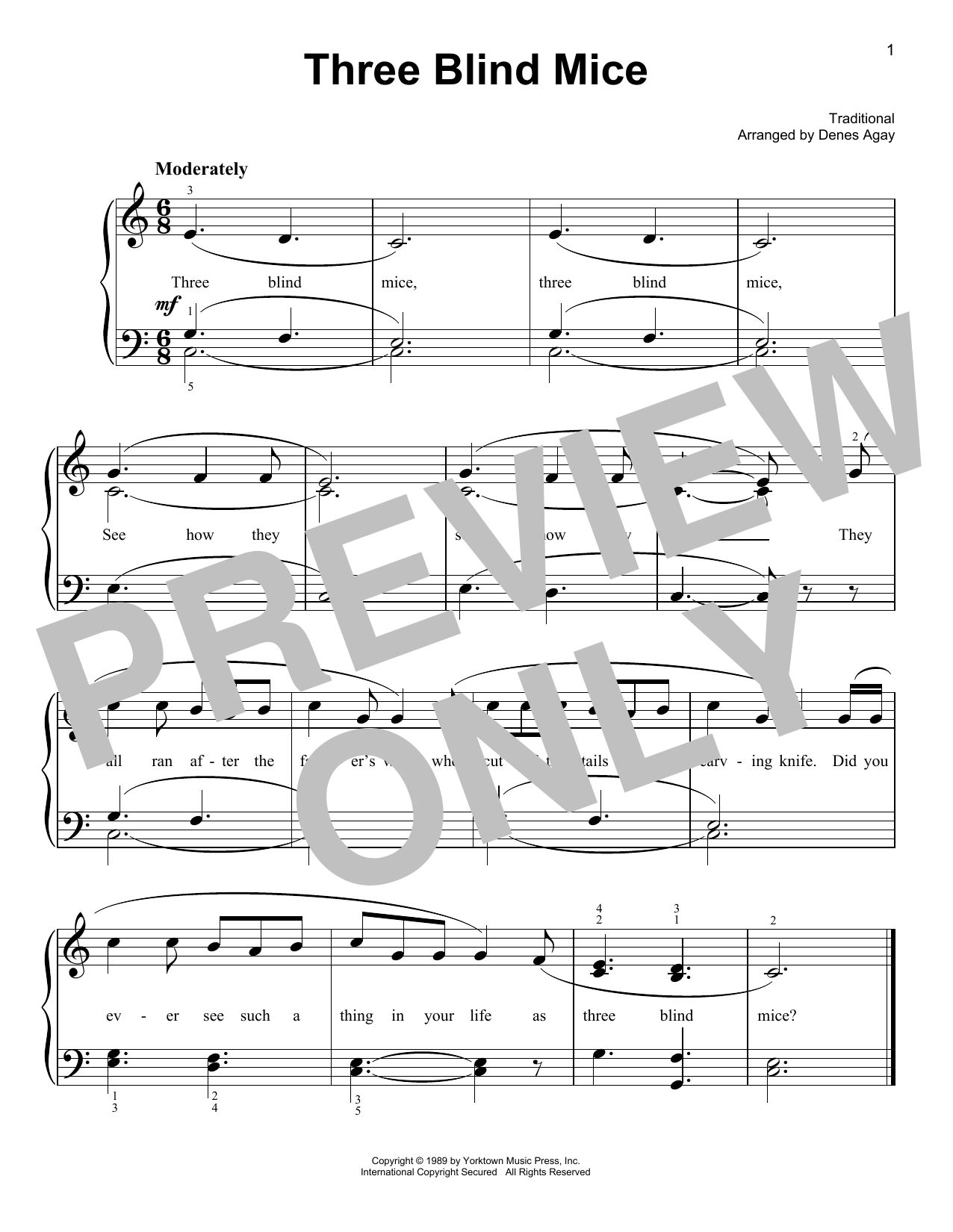Quick facts Three Blind Mice (arr. Denes Agay) about digital sheet music