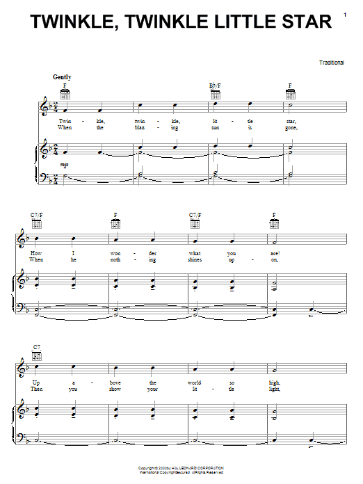 Download or print Traditional Twinkle, Twinkle Little Star sheet music, chords and digital score arranged for Easy Lead Sheet / Fake Book. This Children score includes 1 page(s).