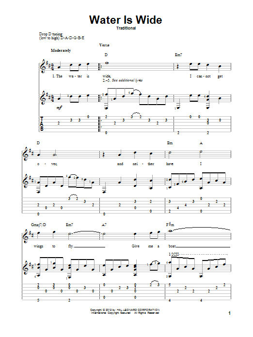 Download or print Traditional Water Is Wide sheet music, chords and digital score arranged for Piano Solo. This Folk score includes 3 page(s).