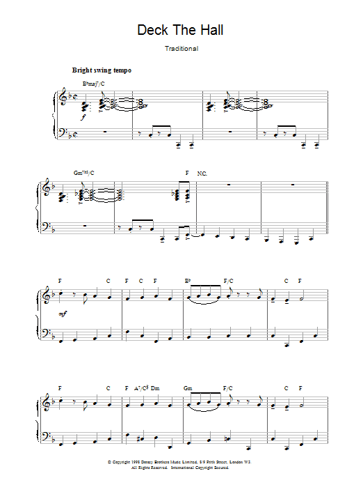 Download or print Traditional Welsh Carol Deck The Hall sheet music, chords and digital score arranged for Piano Solo. This Christmas score includes 3 page(s).