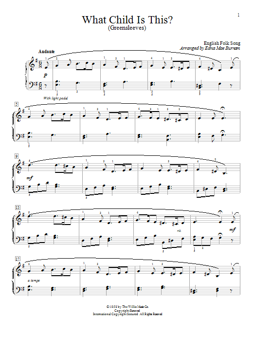 Download or print Traditional What Child Is This? (Greensleeves) sheet music, chords and digital score arranged for Educational Piano. This Christmas score includes 2 page(s).