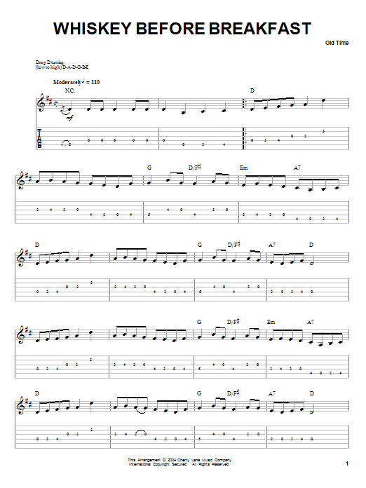 Download or print Traditional Whiskey Before Breakfast sheet music, chords and digital score arranged for Solo Guitar. This Folk score includes 5 page(s).