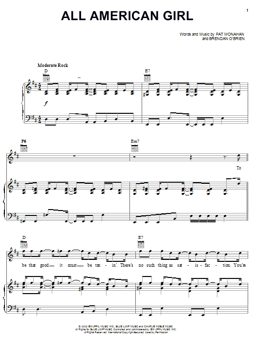 Download or print Train All American Girl sheet music, chords and digital score arranged for Piano, Vocal & Guitar Chords (Right-Hand Melody). This Pop score includes 8 page(s).