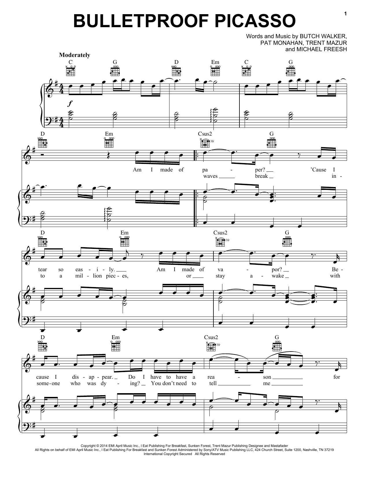 Download or print Train Bulletproof Picasso sheet music, chords and digital score arranged for Easy Guitar Tab. This Pop score includes 4 page(s).