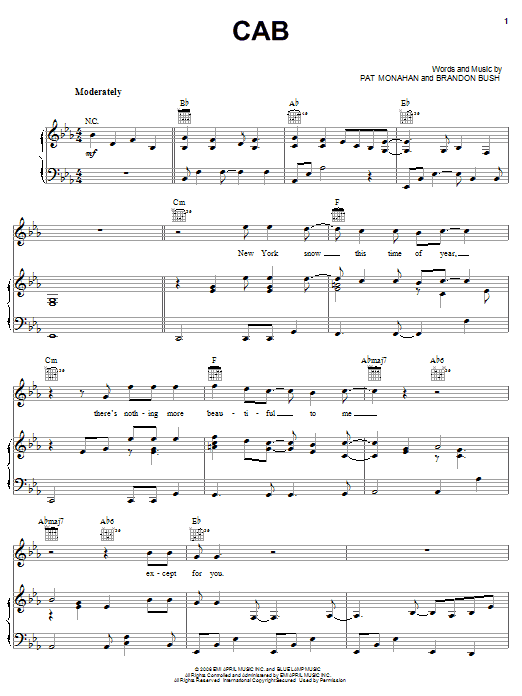 Download or print Train Cab sheet music, chords and digital score arranged for Piano, Vocal & Guitar Chords (Right-Hand Melody). This Pop score includes 7 page(s).