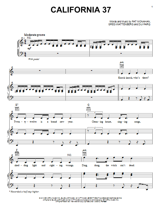 Download or print Train California 37 sheet music, chords and digital score arranged for Piano, Vocal & Guitar Chords (Right-Hand Melody). This Pop score includes 5 page(s).
