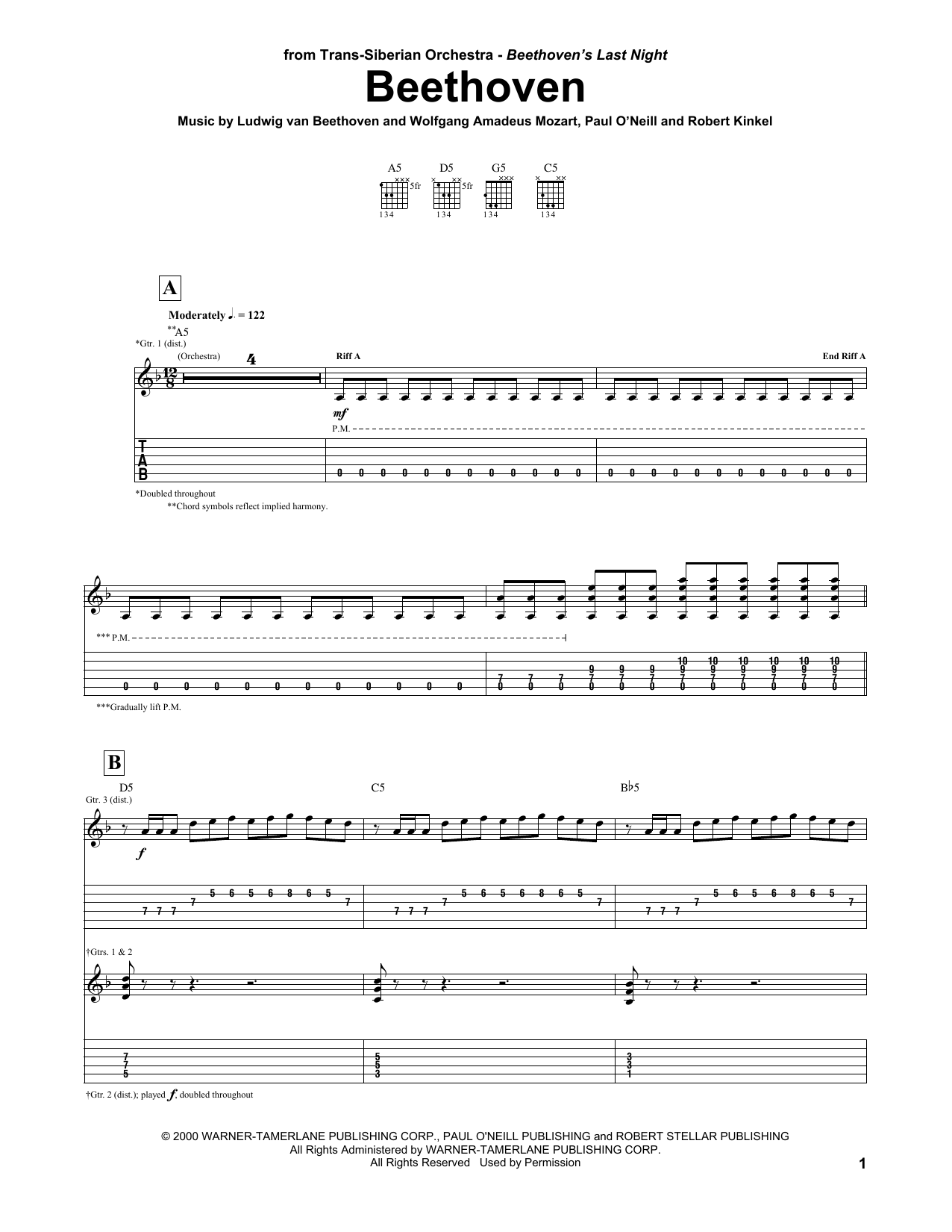 Download or print Trans-Siberian Orchestra Beethoven sheet music, chords and digital score arranged for Guitar Tab (Single Guitar). This Christmas score includes 5 page(s).