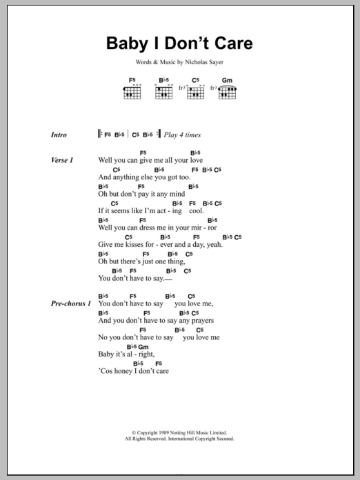 Quick facts Baby I Don't Care about digital sheet music
