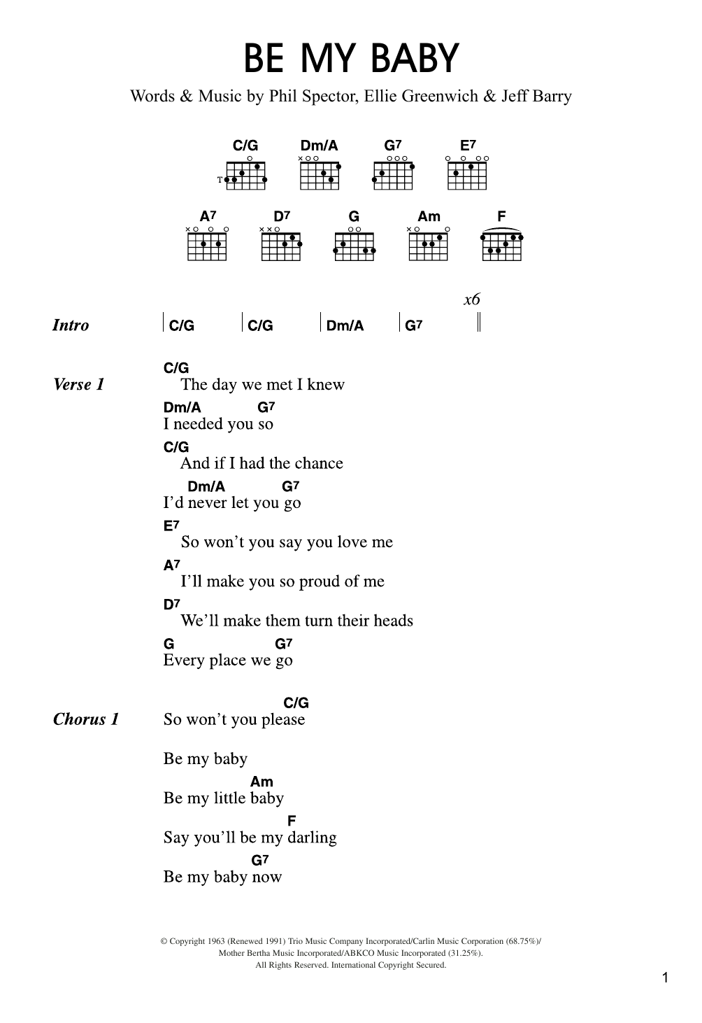 Quick facts Be My Baby about digital sheet music