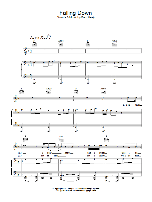 Download or print Travis Falling Down sheet music, chords and digital score arranged for Guitar Tab. This Pop score includes 6 page(s).
