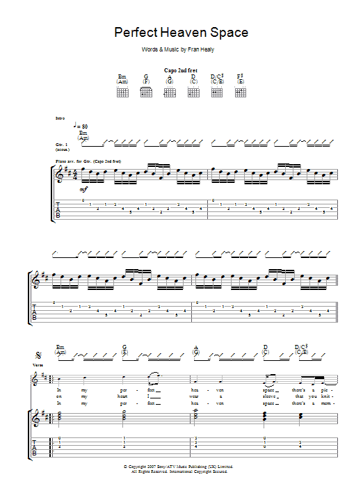 Download or print Travis Perfect Heaven Space sheet music, chords and digital score arranged for Guitar Tab. This Pop score includes 6 page(s).