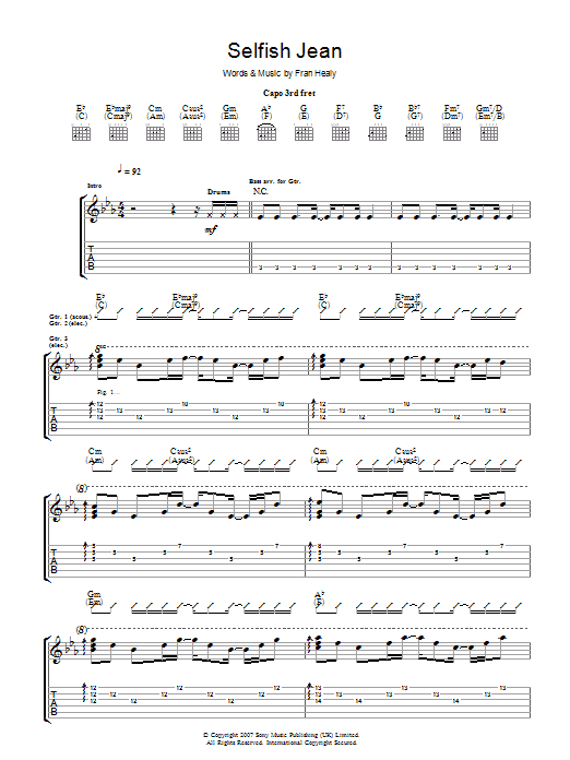 Download or print Travis Selfish Jean sheet music, chords and digital score arranged for Guitar Tab. This Pop score includes 6 page(s).