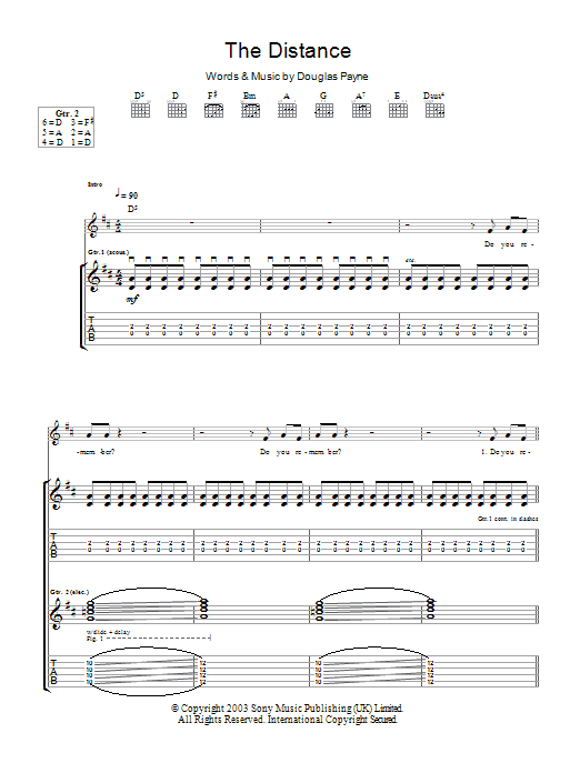 Download or print Travis The Distance sheet music, chords and digital score arranged for Guitar Tab. This Alternative score includes 6 page(s).