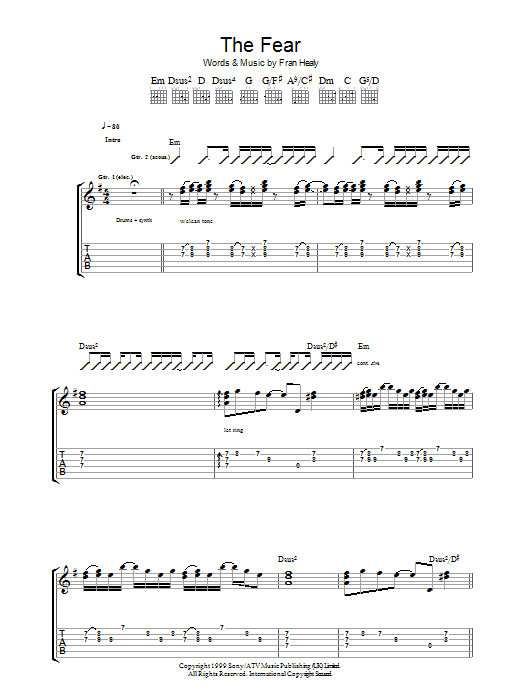 Download or print Travis The Fear sheet music, chords and digital score arranged for Guitar Tab. This Pop score includes 7 page(s).