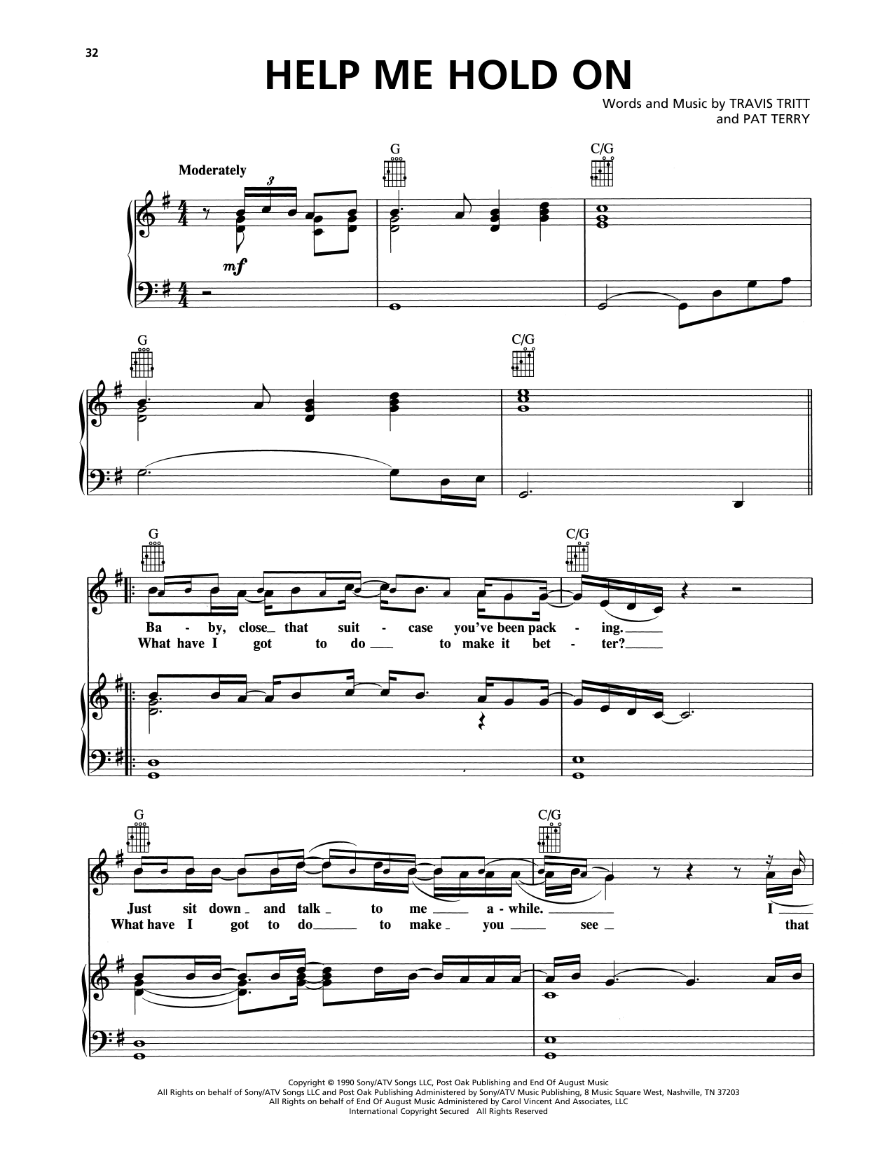 Download or print Travis Tritt Help Me Hold On sheet music, chords and digital score arranged for Piano, Vocal & Guitar Chords (Right-Hand Melody). This Country score includes 5 page(s).