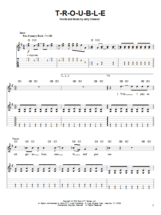 Download or print Travis Tritt T-R-O-U-B-L-E sheet music, chords and digital score arranged for Bass Guitar Tab. This Country score includes 10 page(s).