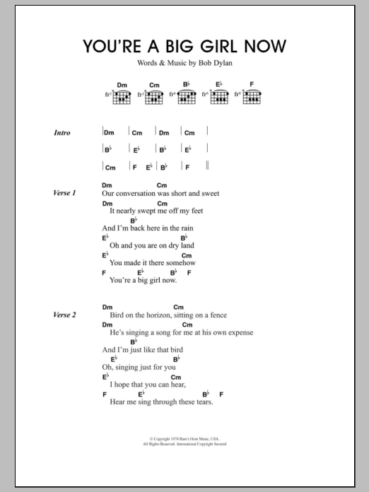 Download or print Travis You're A Big Girl Now sheet music, chords and digital score arranged for Guitar Chords/Lyrics. This Rock score includes 3 page(s).
