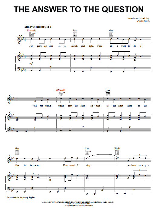 Download or print Tree63 The Answer To The Question sheet music, chords and digital score arranged for Piano, Vocal & Guitar Chords (Right-Hand Melody). This Christian score includes 8 page(s).