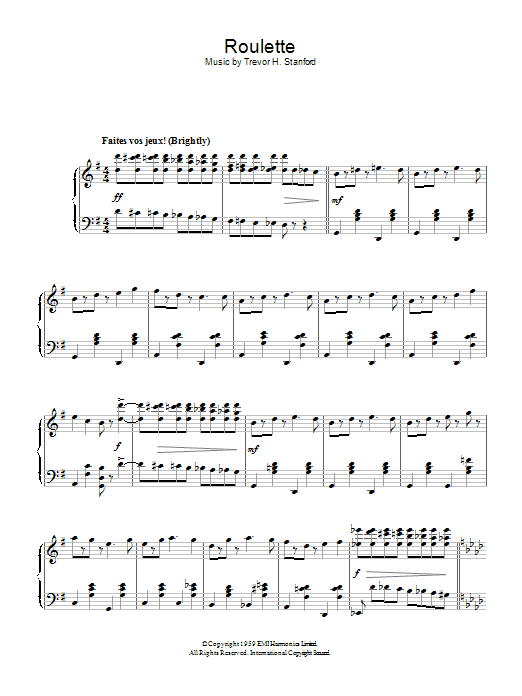 Download or print Trevor H. Stanford Roulette sheet music, chords and digital score arranged for Piano Solo. This Standards score includes 3 page(s).