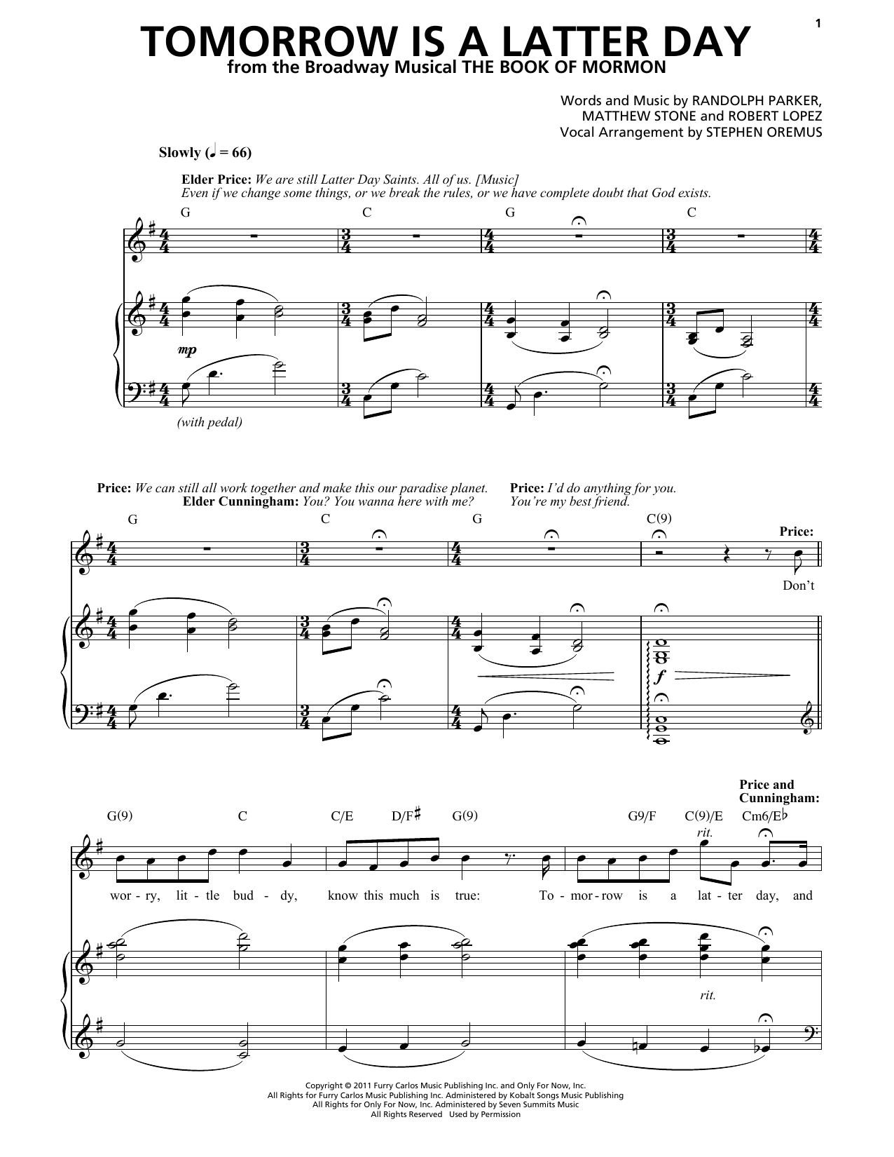 Download or print Trey Parker & Matt Stone Tomorrow Is A Latter Day sheet music, chords and digital score arranged for Piano & Vocal. This Pop score includes 18 page(s).