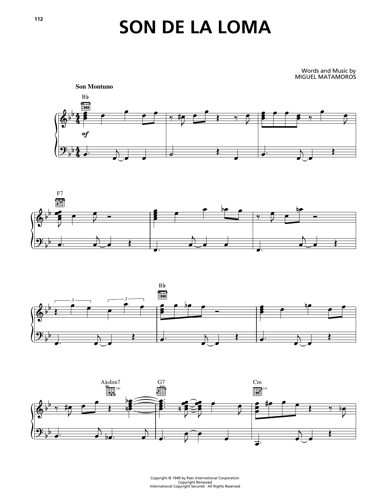 Download or print Trio Matamoros Son De La Loma sheet music, chords and digital score arranged for Piano, Vocal & Guitar Chords (Right-Hand Melody). This Jazz score includes 5 page(s).